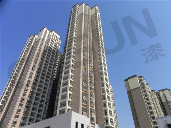 超前漆技術(shù)人員先為大家講解下水性外墻漆:主要低碳環(huán)保性能,不含有害致癌物質(zhì),無毒無味,涂刷后即可入住,對人體不會有傷害。因為水性外墻漆不含有害物質(zhì),不會向空氣中揮發(fā),因此不會有易變黃變色等缺陷,保色性好。另外水性外墻漆的漆膜質(zhì)量好,壽命年限長,在儲存上還具有不易燃對包裝也沒有特殊要求。水性外墻漆在施工上比較方便快捷,經(jīng)過簡單培訓(xùn)即可涂刷,修補翻新上也極為方便。